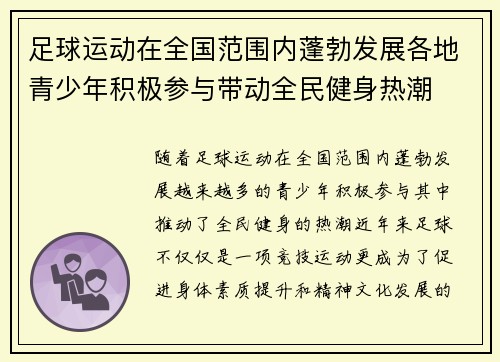 足球运动在全国范围内蓬勃发展各地青少年积极参与带动全民健身热潮
